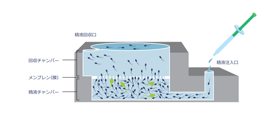 ※精子の運動性を利用した精子回収法の為、重度乏精子症、重度精子無力症の方は適応にならない場合があります。使用に関しては当日の精子所見によって決まります。